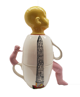 "Humanity's Gambit," 2021, ceramic sculpture (wooden base), 33 x 84 x 108"
